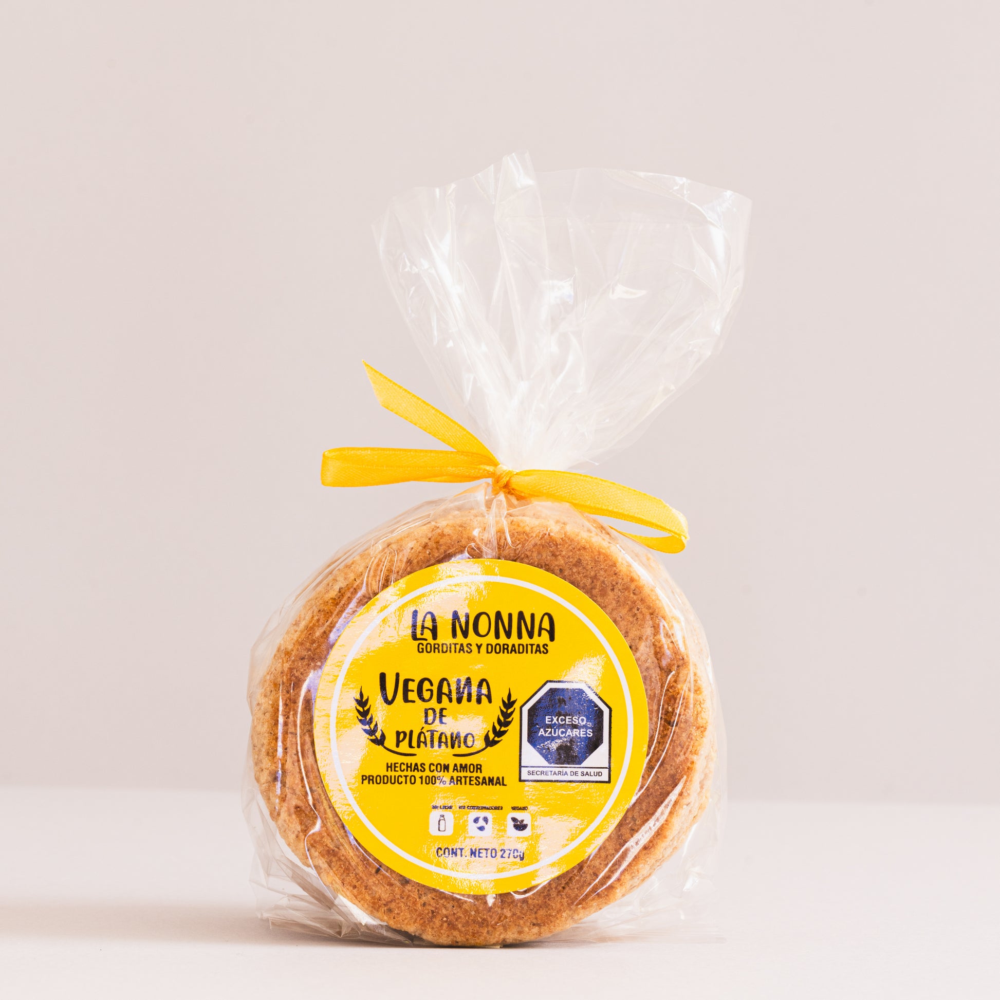 Harina integral, aceite de oliva, azúcar mascabado, vainilla, leche de almendras, plátano, polvo para hornear. SIN HUEVO/SIN LÁCTEOS.